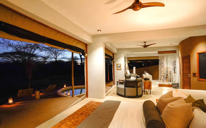 Travel west via Iringa into Ruaha, Tanzania’s largest and most remote park. Enter at golden hour for an introductory drive among ancient baobabs and river sandbanks. Your lodge, a retreat, overlooks the wild country, with elephant silhouettes at dusk and the distant call of hyenas after dark; a three-night stay ensures an unhurried, in-depth exploration. This is the moment the journey turns wild, where remoteness becomes a classic and silence becomes an integral part of the experience.